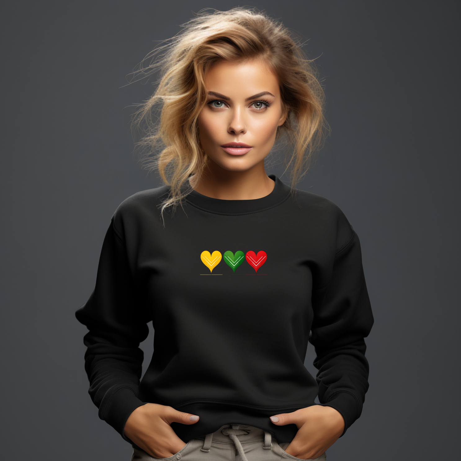 Subtilios trispalvės širdelės – geltona 💛, žalia 💚 ir raudona ❤️ – kalba apie tai, kas svarbiausia: meilė sau, artimam ir Lietuvai. Džemperis „Aš labai myliu Lietuvą“ yra jaukus priminimas, kad šiluma prasideda ne nuo drabužio, o nuo to, ką jauti viduje.