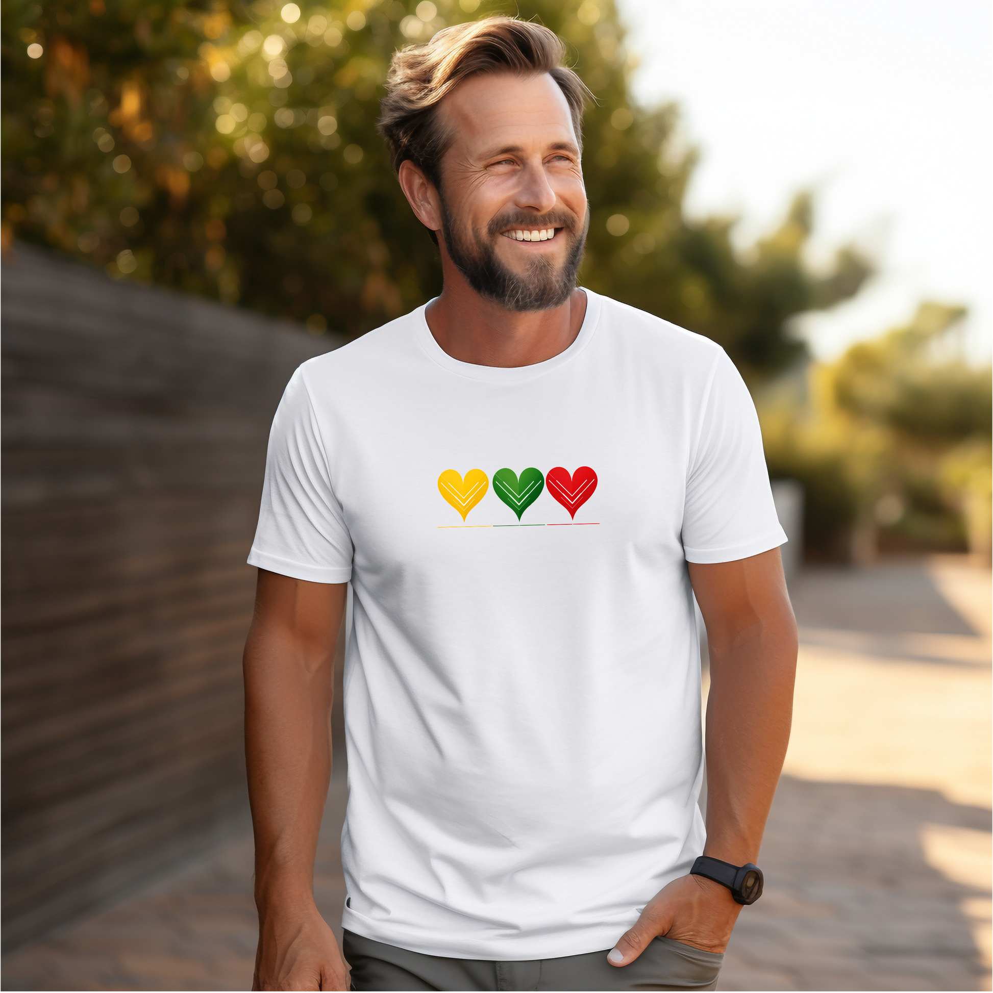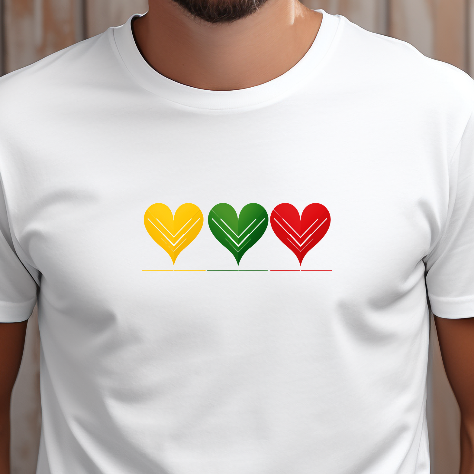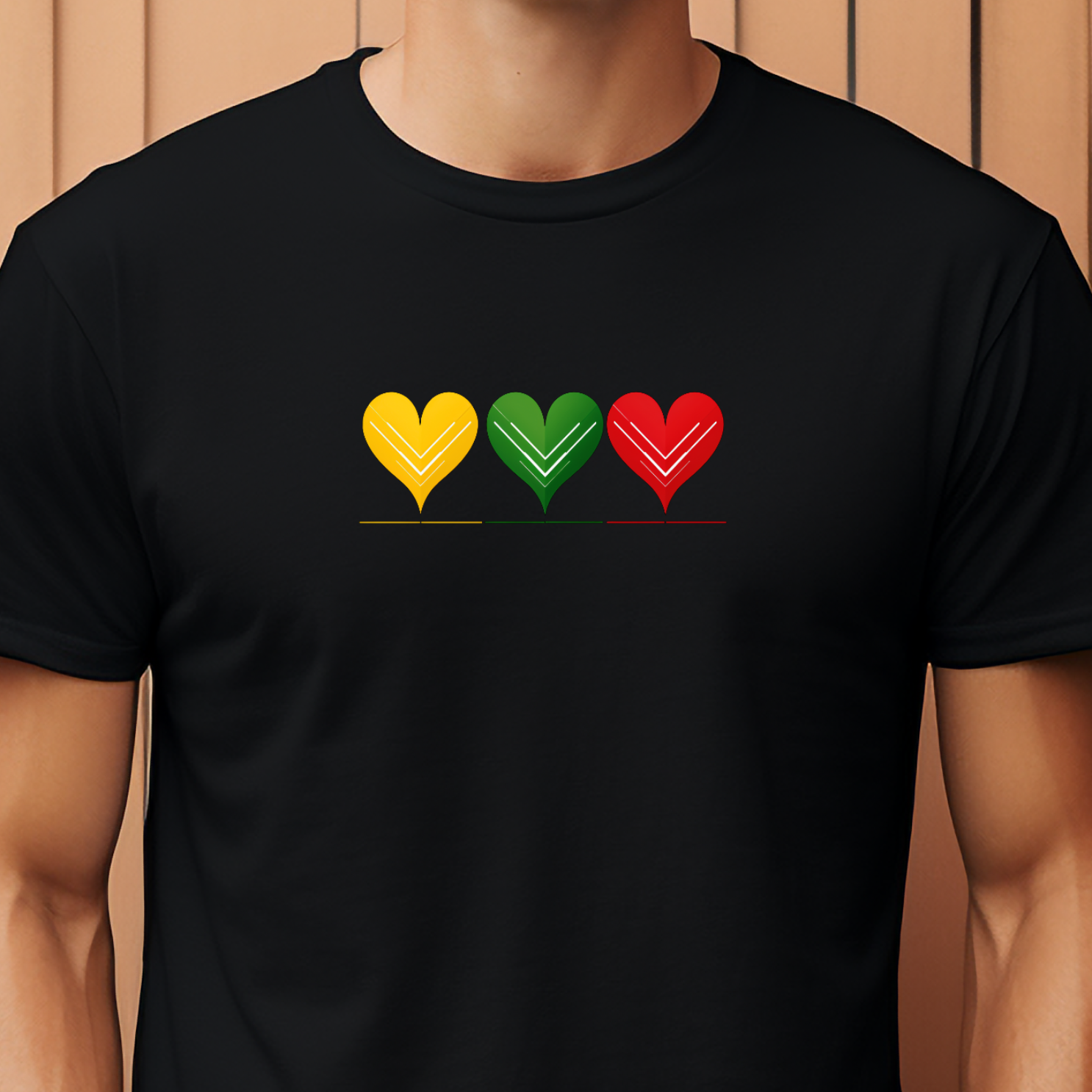 Aš labai myliu Lietuvą – trys širdelės geltona, žalia ir raudona spalvomis perteikia ne tik Lietuvos vėliavą, bet ir meilę: sau, kitam, Tėvynei. Šie marškinėliai – tai minimalistinis, bet galingas pareiškimas, kad lietuviškumas gyvas ne tik širdyje, bet ir stiliuje.