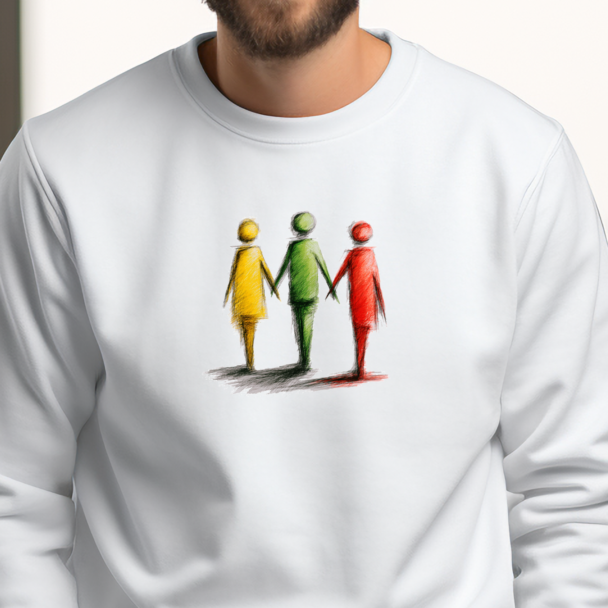 Šis dizainas kalba apie bendrystę, tautinę dvasią ir žmogišką ryšį, perteiktą per šiltą, ranka pieštą stilistiką. Geltona, žalia ir raudona čia nėra tik spalvos – jos tampa žmonėmis, einančiais kartu į priekį, susikibusiais rankomis.