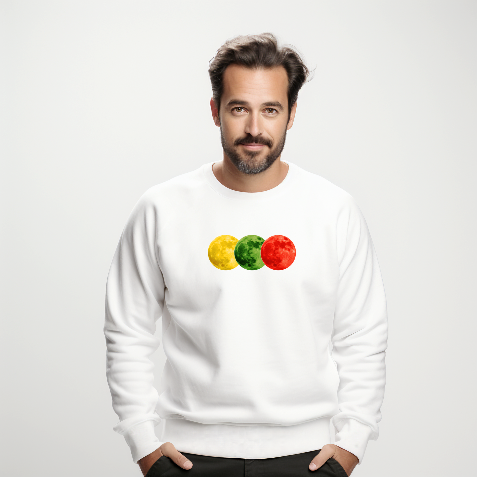 Šis minimalistinis, bet iškalbingas dizainas – tai simbolinis ryšys tarp kosmoso didybės ir Lietuvos širdies. Geltona, žalia ir raudona čia atgimsta ne vėliavoje, o dangaus kūne – mėnulyje, kuris šviečia visiems vienodai, bet šiuo atveju su tautišku prieskoniu.